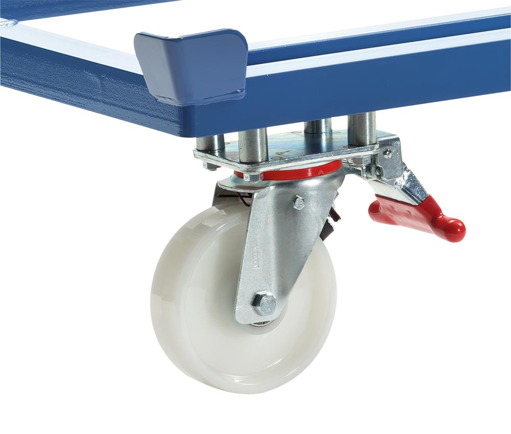 2 Lenkrollen mit feststehenden Feststeller-Betätigungshebeln, passend zu Paletten-Fahrgestellen für Routenzüge, AUFPREIS
