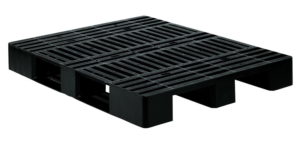 3-Kufen-Palette aus PE Regenerat, Traglast dynamisch/statisch 1000/4000 kg, schwarz, BxTxH 1200x1000x145 mm, ohne Rand E834343