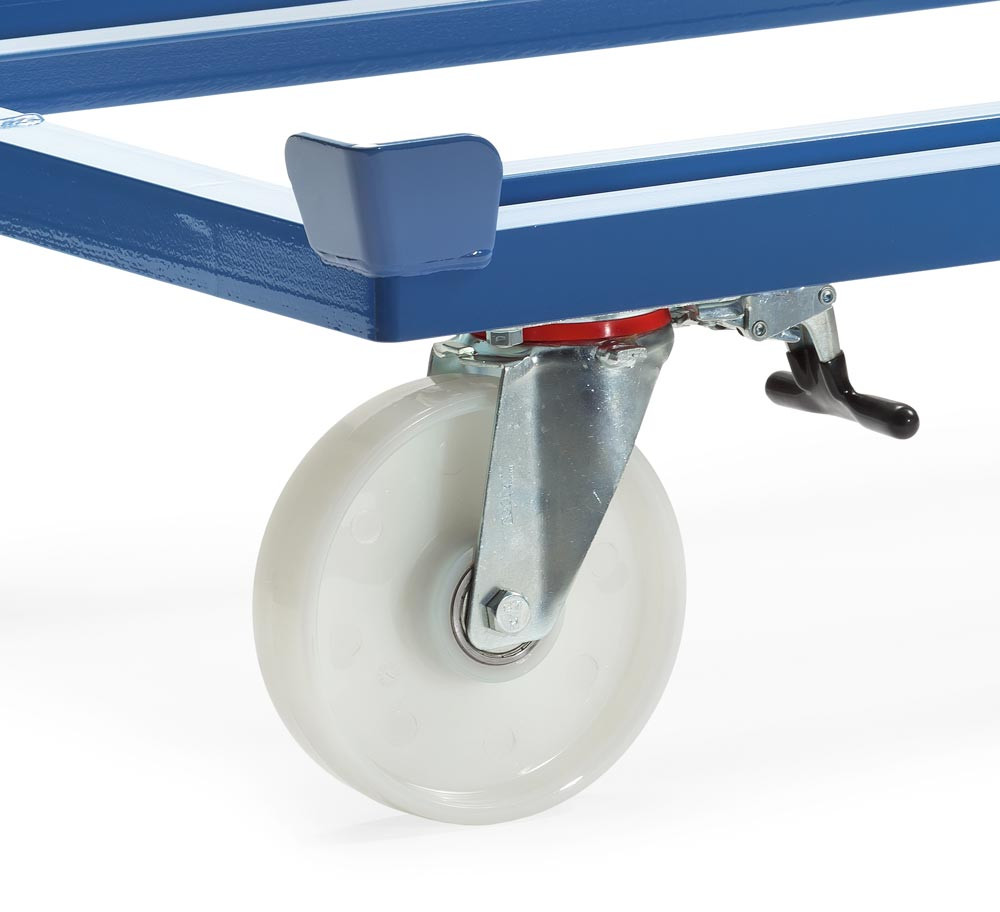 2 Lenkrollen mit feststehenden Feststeller-Betätigungshebeln, passend zu Paletten-Fahrgestellen für Routenzüge, AUFPREIS E6011151