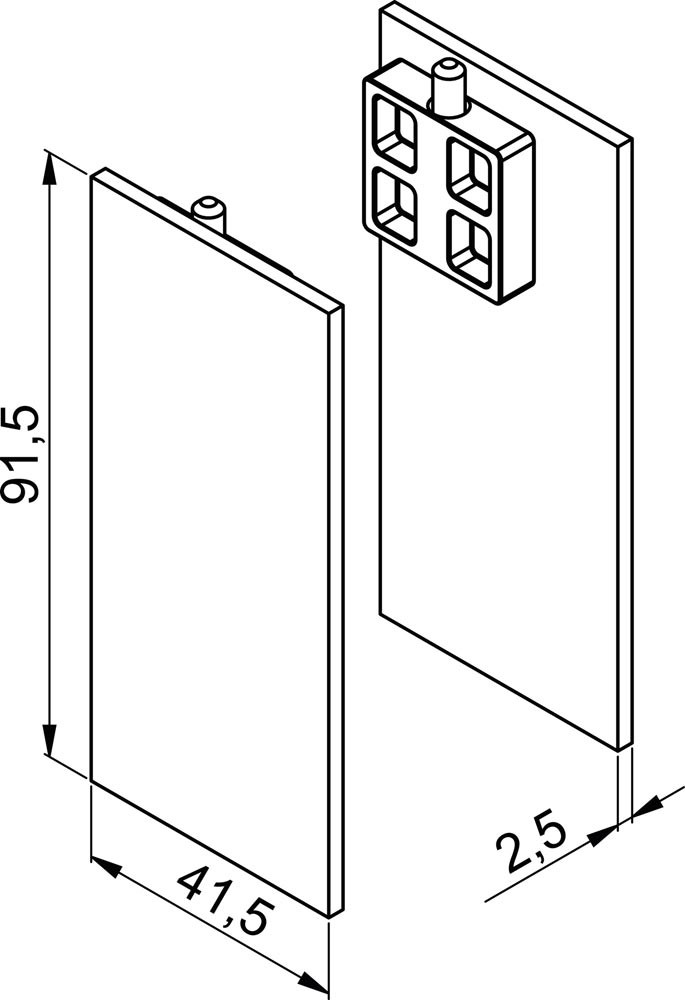 Abdeckkappenpaar Aluminium Edelstahl Effekt eloxiert einseitig Breite 41,5 mm Höhe 91,5 mm E6429131