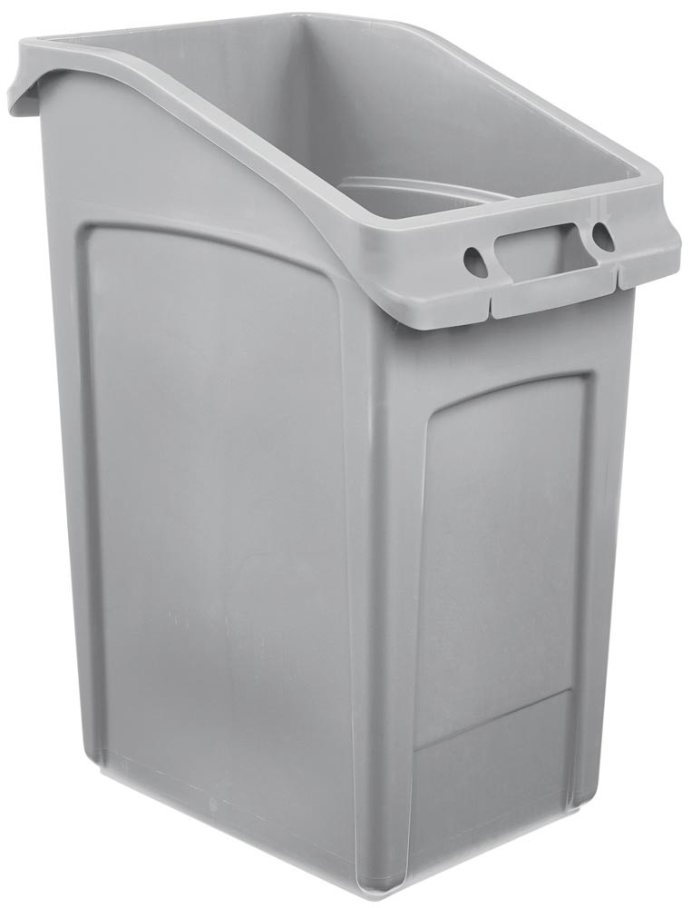 ∙ Hergestellt aus bruchfestem Polyethylen (PE), praxisbewährt selbst unter harten Innen- und Außenbedingungen ∙ Für eine zweckorientierte Lösung für die platzsparende Abfallentsorgung unter dem Tisch ∙ Behälter mit Lüftungskanälen ∙ Form für geringen Platzbedarf ∙ Ideal für vielseitge Einsatzbereiche wie z. B. Hotelhallen, öffentliche Bereiche, Kantinen ∙ Große schräge Öffnung bietet mehr Zugang unter dem Tisch