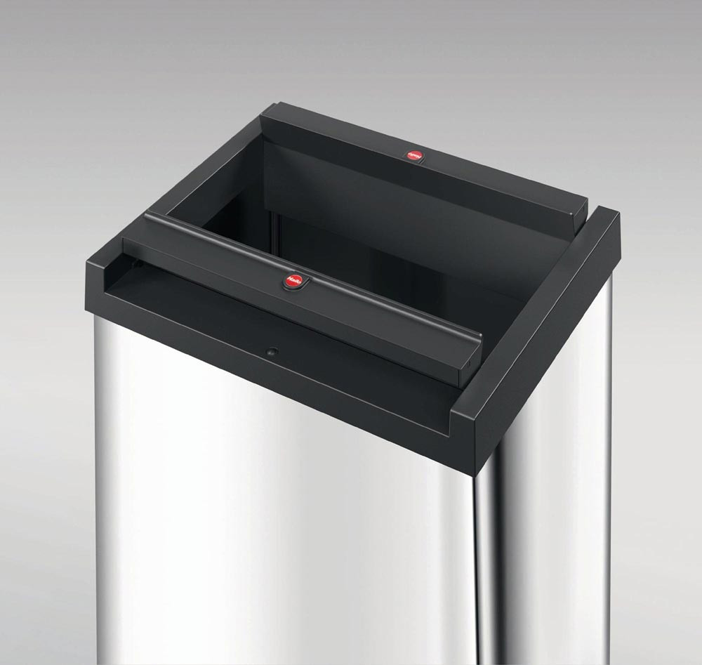 Großraum-Abfallbox, Volumen 35 l, BxTxH 340x260x500 mm, Gehäuse Edelstahl, Kunststoff-Schwingdeckel schwarz E6042815