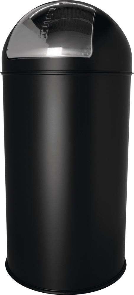 Rumpf und Haube aus pulverbeschichtetem Stahlblech oder Edelstahl · mit verzinktem Metall-Inneneimer · mit Push-Einwurfklappe · der Gummibodenring schützt Boden und Teppiche