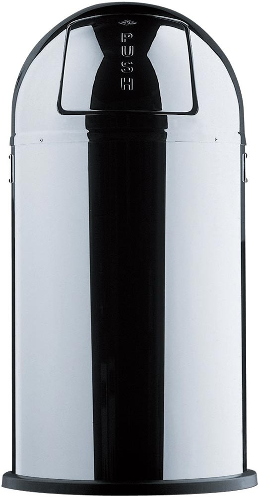 Inhalt 50 l · Rumpf und Haube aus farbig beschichtetem Stahlblech · Einsatz aus feuerverzinktem Stahlblech · die selbstschließende Edelstahl-Pushtür schützt vor Geruch · der Gummibodenring schützt Boden und Teppiche