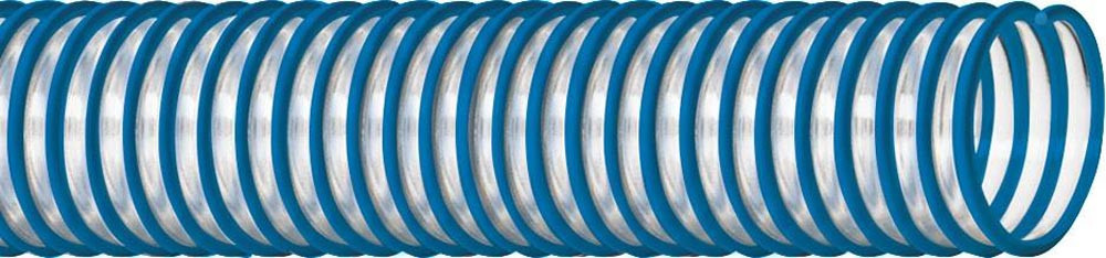 Leichter Universal Polyurethan Absaugschlauch · zur Absaugung von allen Arten von Lebensmitteln, sowohl flüssig und ölhaltig als auch abriebverursachende Lebensmittel bis 40°C. Bitte berücksichtigen Sie die mechanischen Eigenschaften des Schlauches · Aufdruck: NORPLAST PUR 385 Airflex®/PU/Food - REG. EU 10/2011 - Abmessung · Bemerkung: Wir empfehlen die Montage mit Rundschnur · Farbe Innenseele: Transparent · Farbe Spirale: Blau · Fertigungsart Innenseele: Glatt · Fertigungsweise Aussendecke: Gewellt · Norm: EN ISO 1307:2008, EU 10/2011 Kat. A, EU 10/2011 Kat. B, EU 10/2011 Kat. C, EU 10/2011 Kat. D1, EU 10/2011 Kat. D2, EU 10/2011 Kat. E, EU 1935/2004, LFGB (Lebensmittel- und Futtermittelgesetzbuch)