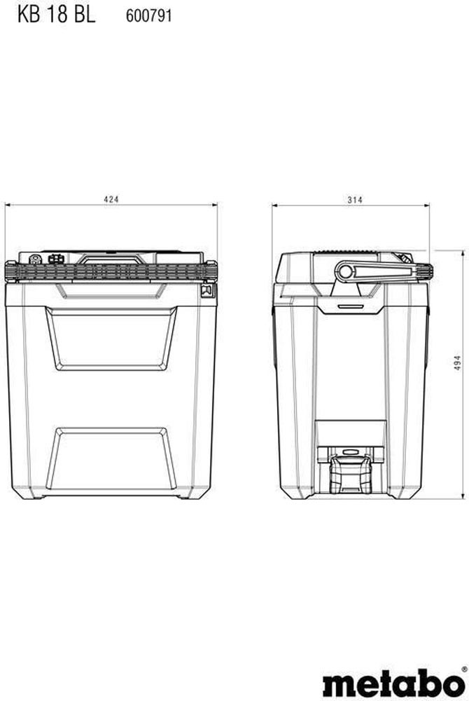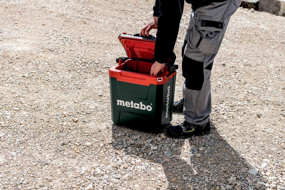 Betrieb mit 18-Volt-Akkupacks von Metabo oder CAS-Partnern, Netzkabel oder 12V-Kfz-Kabel · bürstenloser Motor mit optionalem EcoModus · auch für PET-Flaschen 1,5 Liter · einschiebbares Trenngitter · Flaschenöffner · integriertes Depot für die beiden mitgelieferten Anschlusskabel · stapelbar auf jeder neuen metaBOX · Kühlleistung 17 °C (unter Umgebungstemperatur)