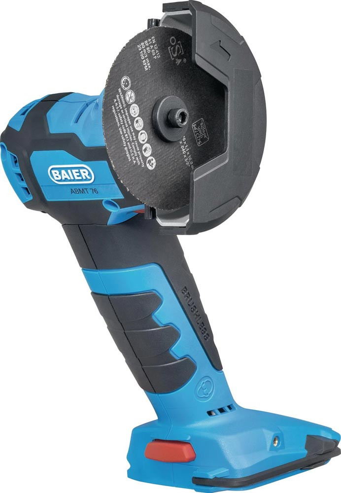bürstenloser Motor · zur Bearbeitung von Metall, Stein, Fliesen und Kunststoff · kompakte Bauweise und geringes Gewicht · drehbare Schutzhaube · Spindelarretierung · thermischer Überlastschutz · Schnitttiefe 18 mm