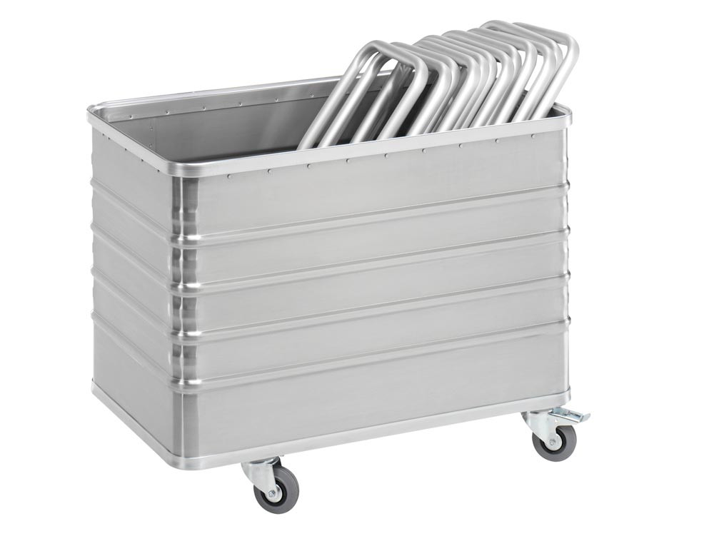 ∙ Aus Aluminium gefertigt und mit trapezförmig ausgeprägten Sicken verstärkt ∙ Umlaufende, sehr stabile Randprofile zur Verstärkung der Wände ∙ Äußerst robust und formstabil ∙ Antistatisch und schmutzabweisend ∙ 2 Lenk- und 2 Bockrollen ∙ Lenkrollen gemäß EN 1757-3 mit Rad-Feststeller