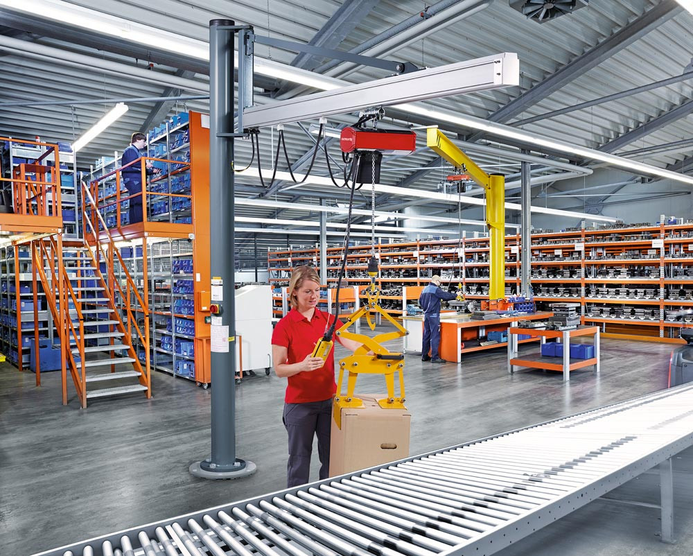 Standardlieferumfang: Grundelektrik, bestehend aus: abschließbarem Trennschalter, Stromzuführung mittels Schleppkabel mit im Profil laufenden Gleitschuhen, innenlaufendes Leichtlaufhandfahrwerk (geeignet zum Einhängen eines Elektrokettenzuges), Krandokumentation mit Konformitätserklärung sowie bebilderter Montage-, Wartungs- und Bedienungsanleitung.