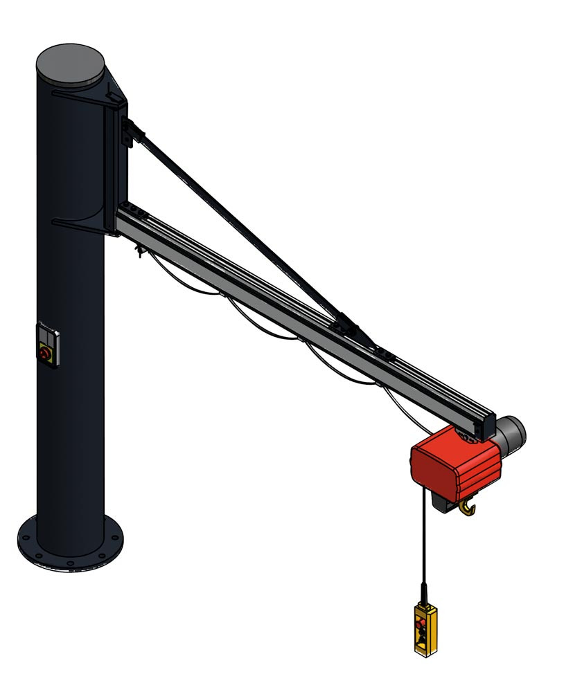 Alu-Säulenschwenkkran, ohne Elektrokettenzug, Traglast 125 kg, Schwenkbereich 270 Grad, Ausladung 2895 mm, Bauhöhe 3287 mm, inkl. Verbund-Anker