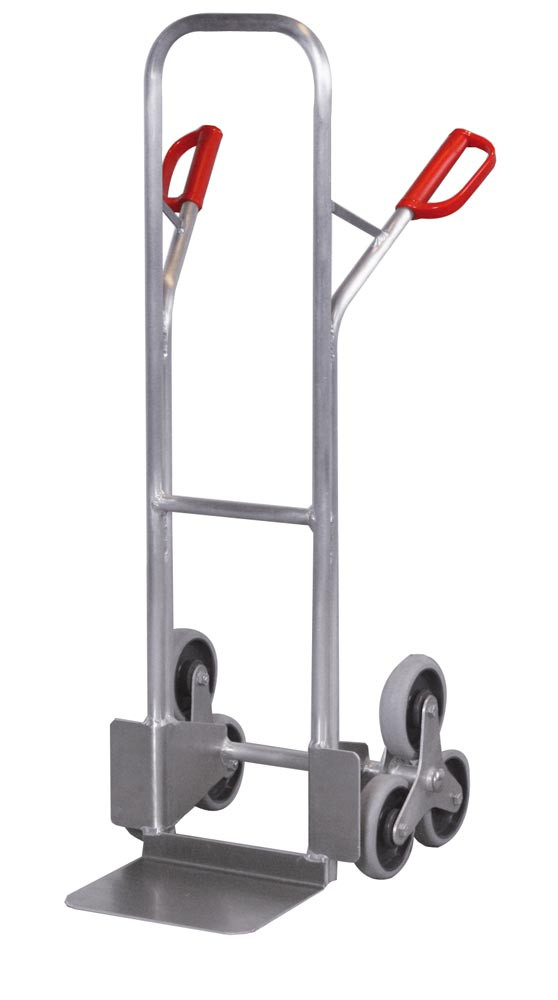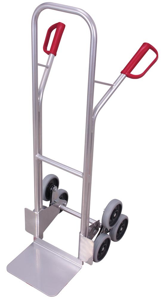 Alu-Treppenkarre, Schaufel-BxT 320x250 mm, BxTxH 570x626x1310 mm, Traglast 200 kg, 2 dreiarmige Radsterne Vollgummibereifung