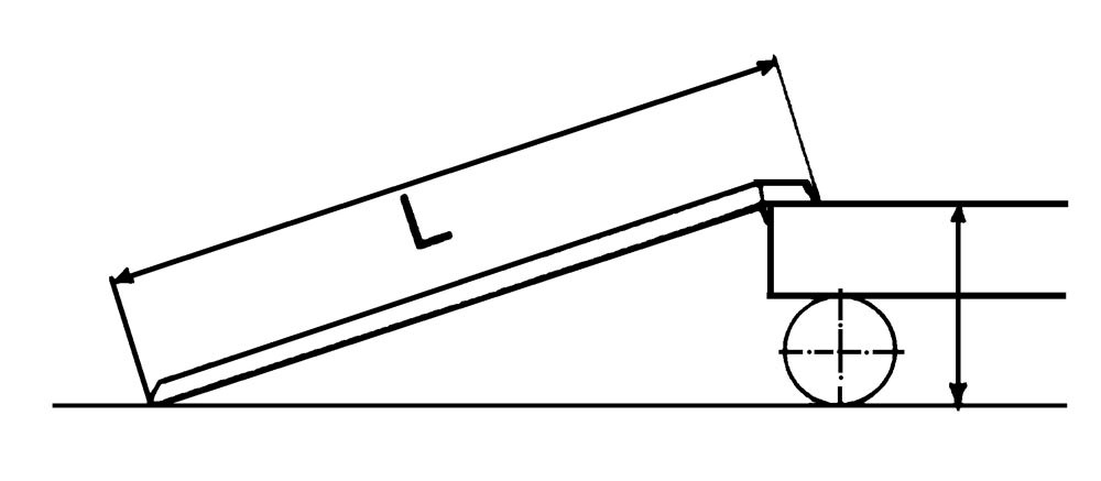 · Die benötigte Überfahrlänge kann wie folgt bestimmt werden: Länge = Höhendifferenz (H)(mm) x 100 / Steigung %