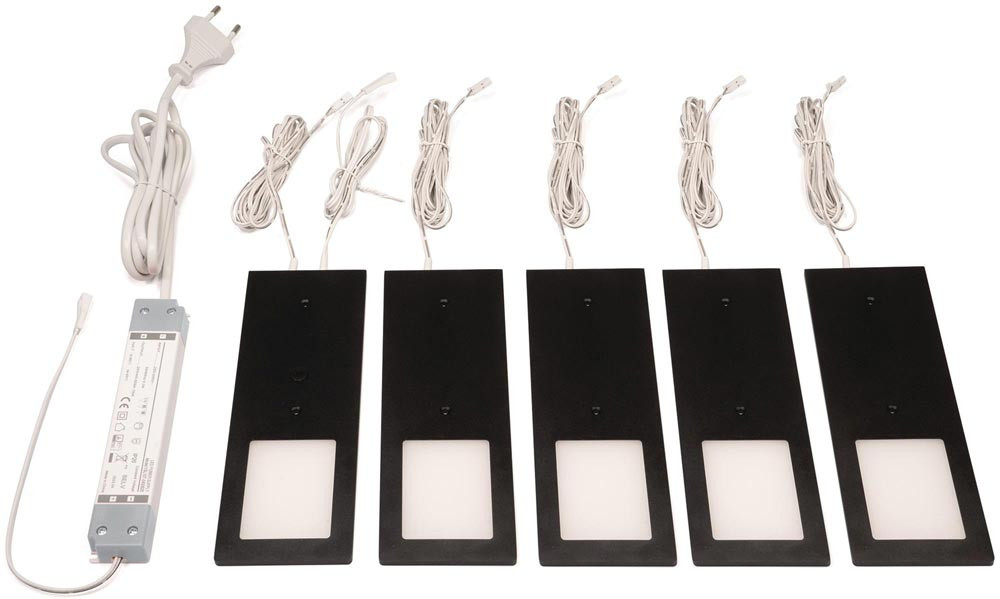 Anbauleuchte Planar L neutralweiß 24 V DC 5 x 3 W Rahmenfarbe schwarz