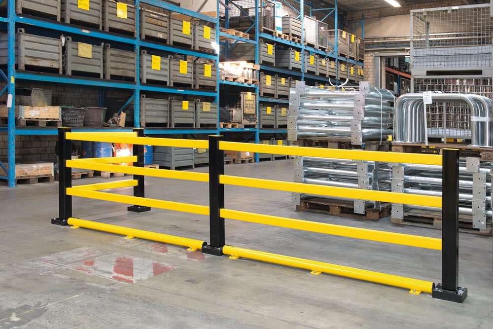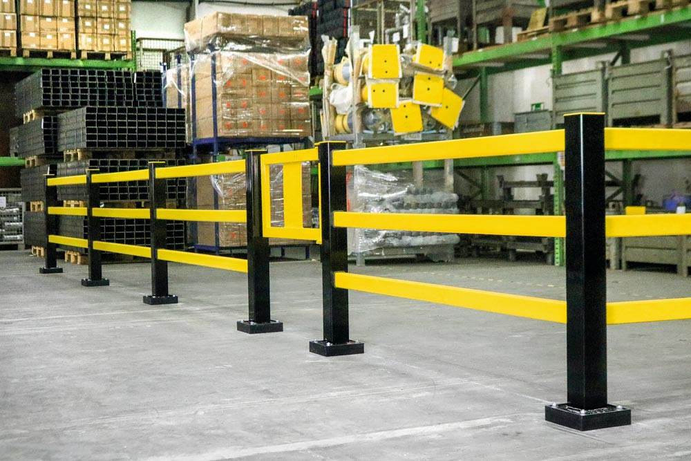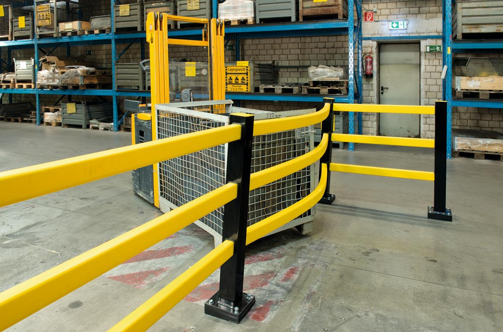 · Rammschutz-Geländer aus nachgebenden Standpfosten aus Stahl und nachgebenden Querholmen aus Kunststoff · Kombiniert die Vorteile von Stahl und Kunststoff · Ausgelegt für höchste Belastungen · Objektbezogen anpassbar an Ihre Bedürfnisse · Die Montage des Geländers erfolgt schnell und einfach