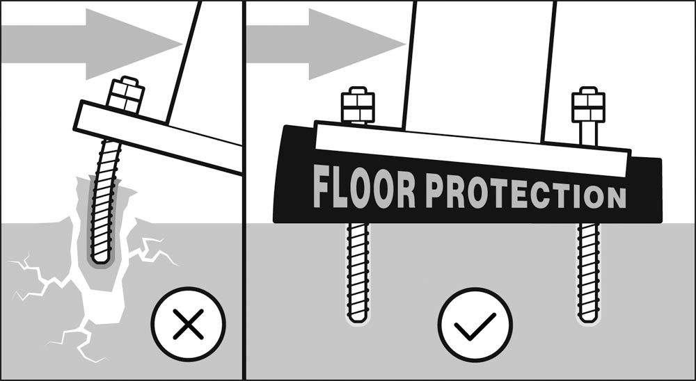 · Die Standpfosten sind mit einem Federelement aus PU ausgestattet und geben bis zu 10° (ca. 175 mm) nach · 3 mm Wandstärke · Bodenplatte zum Aufdübeln 200 x 200 x 10 mm