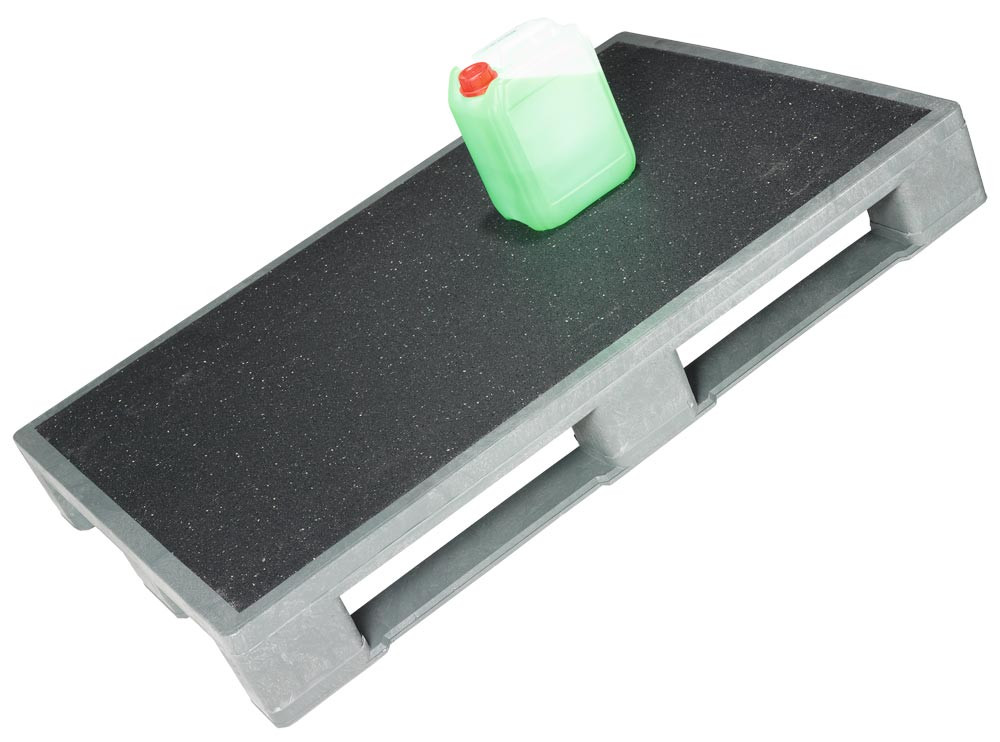 · Aus PE-RE · Rundum geschlossen, dadurch leicht zu reinigen · Sehr robust durch feste Verschweißungen und innenliegender Eisenverstärkung · Eingepresste Anti-Rutsch-Matte für vollflächige Anti-Rutsch-Beschichtung · Temperaturbeständigkeit: -30 °C bis +70 °C · Farbe grau