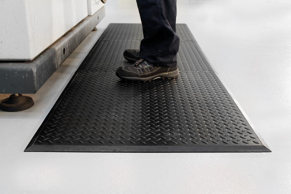 ∙ Strapazierfähige Ergonomiematte mit griffiger Tränenblechoberfläche ∙ Geeignet für Arbeitsbereiche in denen hohe Temparaturen herrschen ∙ Resistent gegen Öle und Fette ∙ Rutschhemmend R10 nach DIN 51130:2014