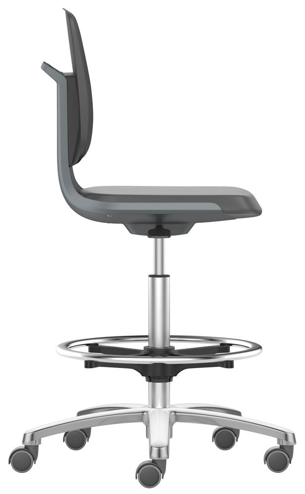 Arbeitsdrehstuhl mit Flex-Rückenlehne u. Sitzkante, Sitzschale anthrazit, Sitz Kunstleder schwarz, Rollen u. Fußring, Sitz Höhe 560-810 mm