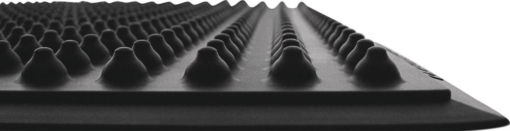 Matte mit hohem ergonomischen Wirkungsgrad und anti-ermüdender Wirkung · ausgestattet mit Kegeldesignoberfläche, Material Nitrilkautschuk · Materialstärke 15 mm, mit abgeschrägten Kanten · widerstandfähig gegen eine große Anzahl von Chemikalien, Fette, Öle und Flüssigkeiten · beständig gegen heiße Metallspane mit kurzen Expositionen bis zu 600 °C · Einsatzbereich für fast alle Arbeitsplätze