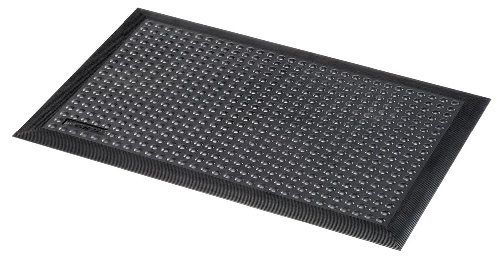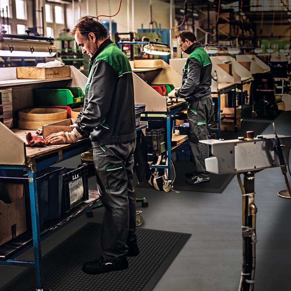 Die geschlossene, rutschfeste Oberfläche gibt beim Betreten nach und dämpft den Schritt. Ideal für den Einsatz in Verkaufs- und Kassierzonen, Rezeptionen, Kontrollständen und Labor- und Montagebereichen.
