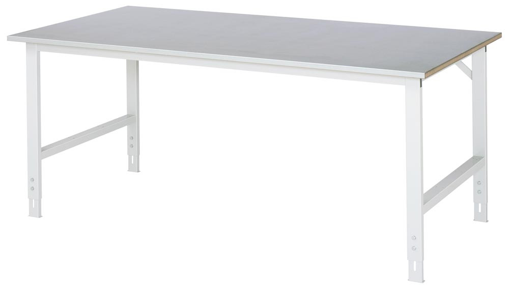 Arbeitstisch, Grundtisch, stufenlos manuell höhenverstellbar, Platte mit Stahlblechbelag 25 mm, BxTxH 2000x1000x760-1080 mm, RAL 7035