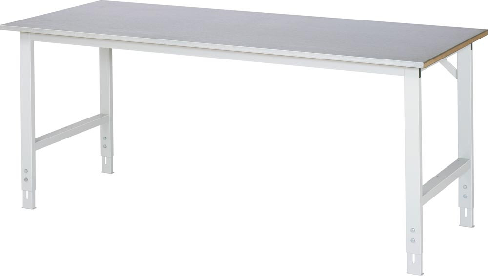 Arbeitstisch, Grundtisch, stufenlos manuell höhenverstellbar, Platte mit Stahlblechbelag 25 mm, BxTxH 2000x800x760-1080 mm, RAL 7035