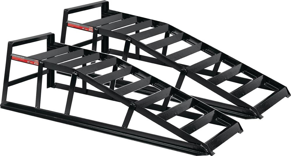 Starre, extra breite Stahlgitterausführung, lackiert · mit Überfahrschutz, bis 225 mm Reifenbreite geeignet · Auffahrhöhe 21 cm · Zulässige Belastung 2.000 kg pro Paar · Set: 2 Stück · Karton verpackt