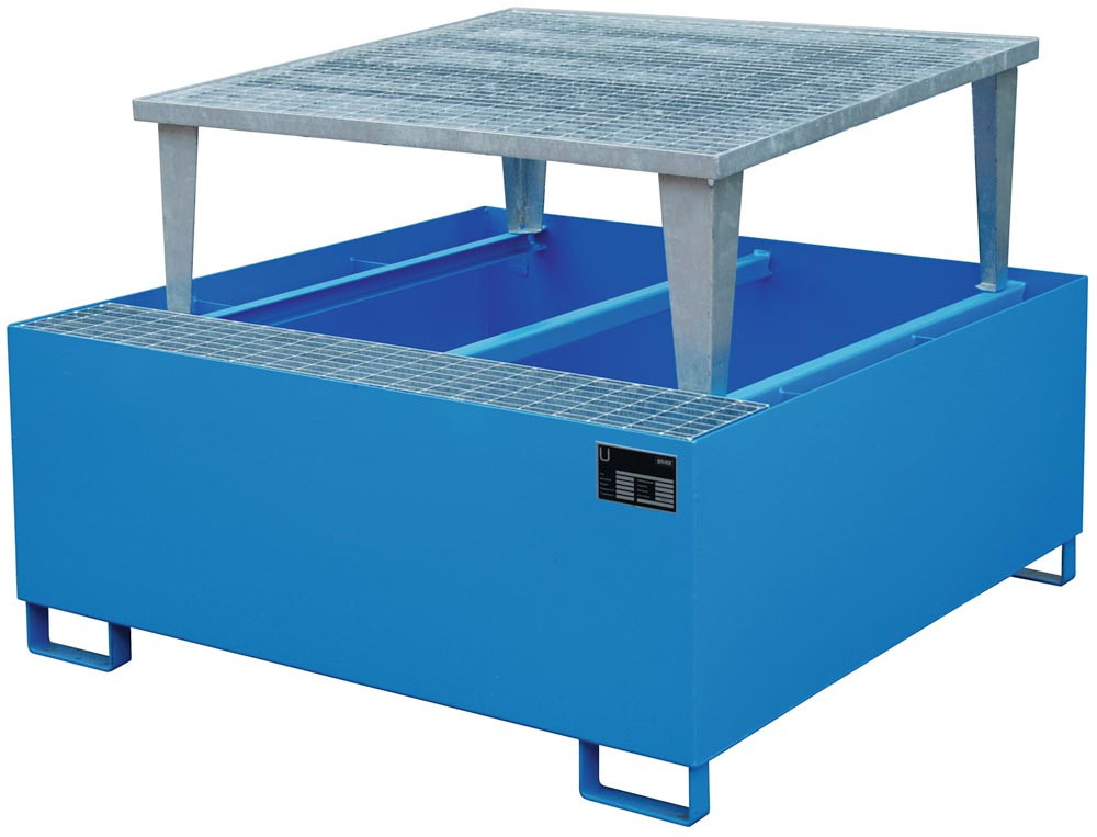 Auffangwanne, Stahl, Auffangvolumen 1000 l, BxTxH 1460x1460x1090 mm, mit Abfüllaufsatz, RAL 5012 E865683