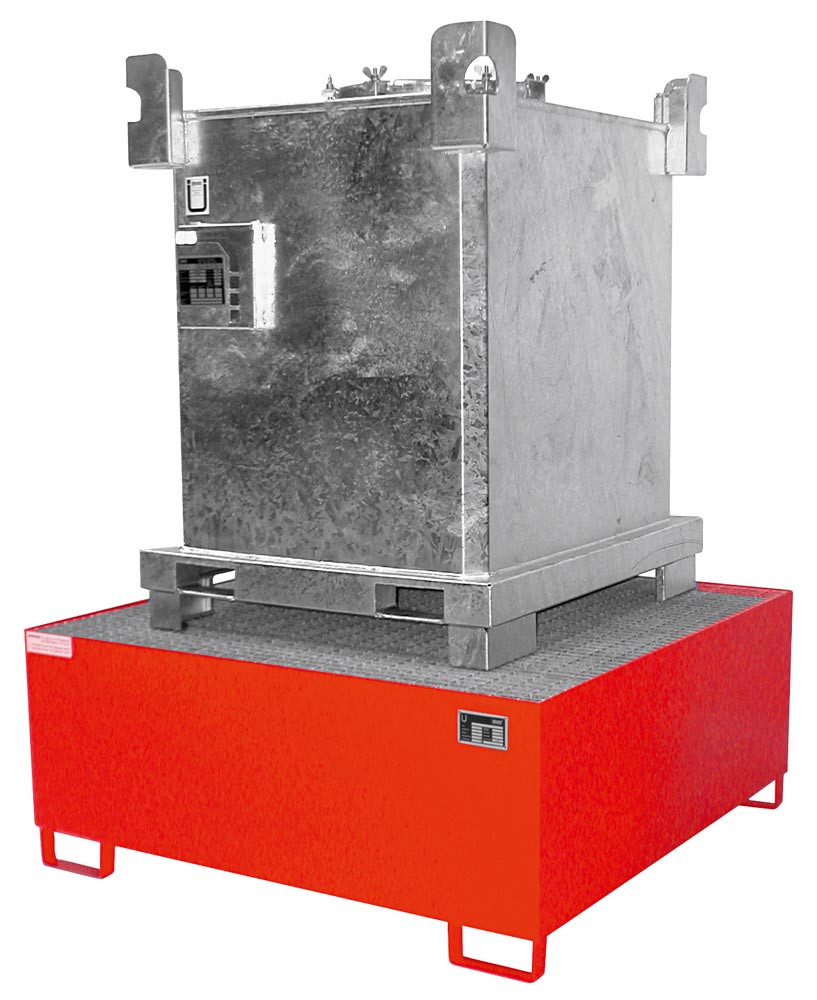 Auffangwanne, Stahl, Auffangvolumen 1000 l, BxTxH 1460x1460x630 mm, ohne Abfüllaufsatz, RAL 3000 E865658