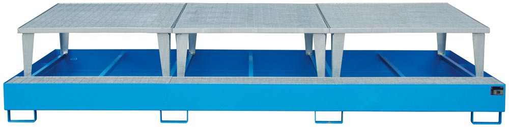 ∙ Auffangwannen aus 3 mm Stahlblech mit verzinktem Gitterrost ∙ Auffangvolumen 1000 Liter ∙ Stützfüße 100 mm Unterfahrhöhe