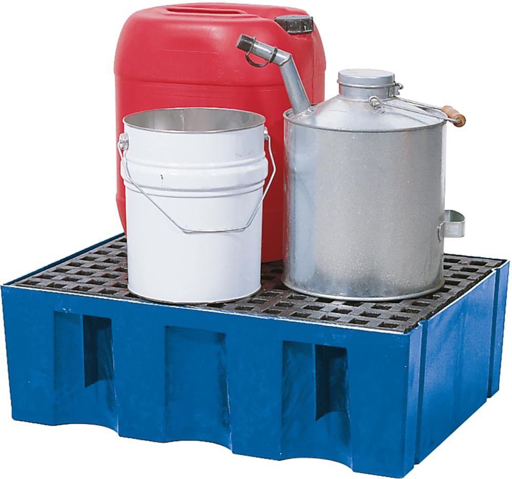 ∙ Zur sicheren und vorschriftsmäßigen Lagerung wassergefährdender Flüssigkeiten aller Gefährdungsklassen ∙ Hohe Beständigkeit gegen Säuren, Laugen, Öle und andere Stoffe ∙ Mit allgemeiner bauaufsichtlicher Zulassung des DIBt-Berlin ∙ Auffangvolumen 60 l ∙ Nicht zur Lagerung brennbarer Flüssigkeiten zugelassen