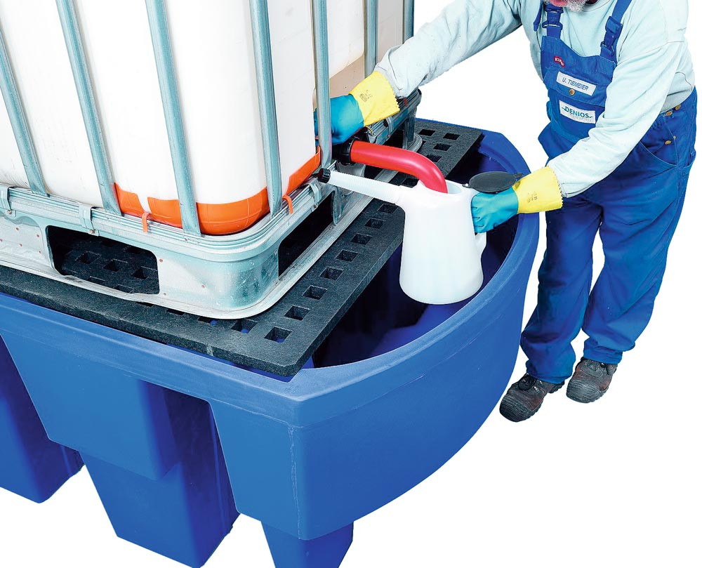 Auffangwanne aus Polyethylen für IBC, PE-Gitterrost, Volumen 1000 l, BxTxH 1280x1660x895 mm, für 1 IBC, blau E1988269