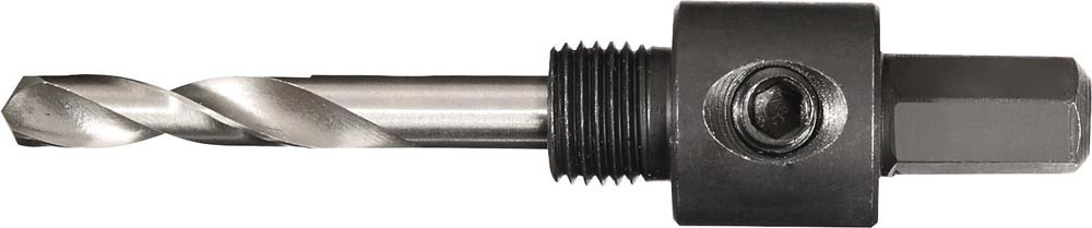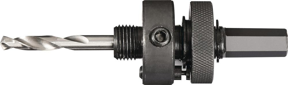 die Aufnahmen für die Lochsägen werden jeweils mit einem 6,35 mm (1/4")-Führungsbohrer geliefert · eine Feststellschraube ermöglicht die Veränderung der Position des Führungsbohrers