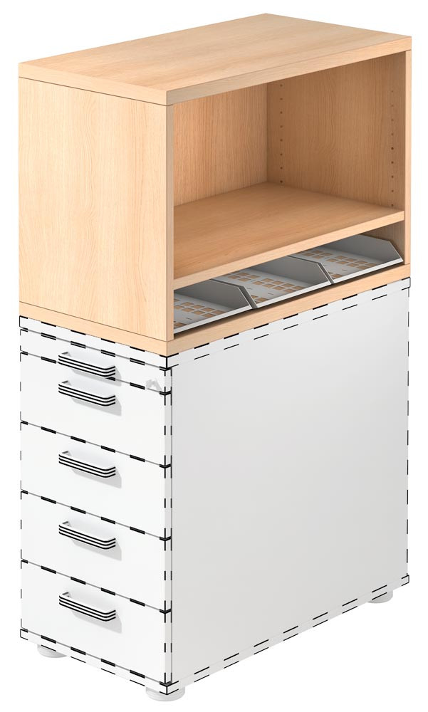 Aufsatzregal für Standcontainer, 1 Boden, BxTxH 428x800x530 mm, buche E6039944