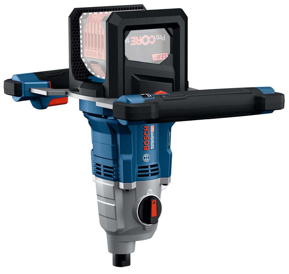 Akku-Rührwerk mit ergonomischem und verstellbarem Griff ∙ Höhenverstellung sorgt für komfortables und rückenschonendes Arbeiten ∙ Je nach persönlicher Vorliebe kann die Geschwindigkeit über einen variablen Gasgebeschalter, Drehzahlvorwahl oder eine Softstart-Funktion fein eingestellt werden ∙ Leistungsstarker bürstenloser Motor mit 2 Getriebestufen sorgt für müheloses Mischen aller Materialien, von flüssig bis zäh ∙ Zum Mischen von Mörtel, Kleber, Farbe, Spachtelmasse, Gips, Fugenmasse, Putz und Estrich ∙ Max. Mischmenge 50 Liter