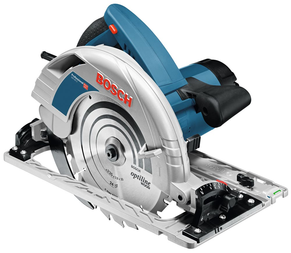Ausführung: Kraftvolle und robuste Handkreissäge mit 2200 Watt-Motor ∙ Stufenlos einstellbare Schnitttiefeneinstellung ∙ Winkeleinstellung über 3fach gelagerten Schwenkbügel ∙ Leichter Sägeblattwechsel durch Spindelarretierung ∙ Sicherheitsschalter mit Einschaltsperre · Aluminiumdruckgussgrundplatte passend für das neue Führungsschienensystem sowie für Führungsschienen anderer Anbieter ∙ Hochpräzise, lange, gerade Schnitte dank kompatiblem Bosch Führungsschienensystem ∙ Jederzeit bessere Sicht auf die Anrisslinie dank optimiertem Spanabweiser und Turbogebläse