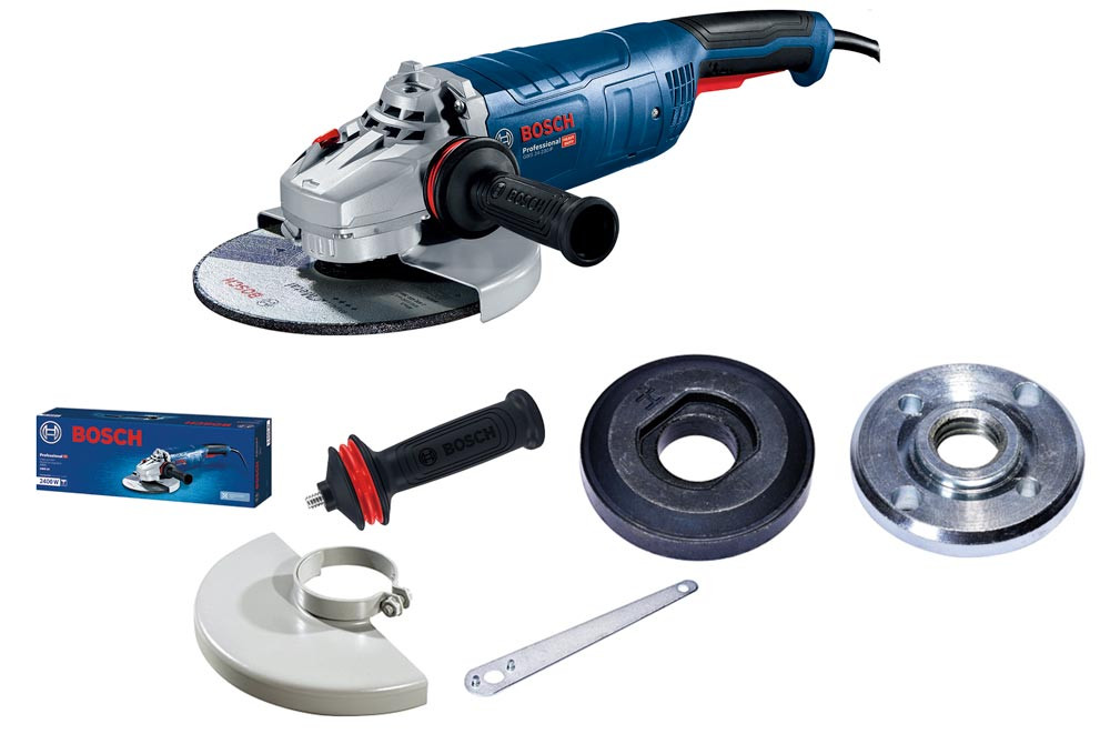 Kraftvoller Winkelschleifer mit 2400 Watt Motor für solides Trennen und Schleifen ∙ PROtection-Schalter für erhöhten Anwenderschutz ∙ Weniger Vibrationen und mehr Komfort dank Anti-Vibration-Zusatzhandgriff
