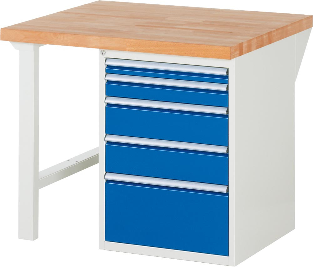 Baukastenwerkbank, Platte Buche 40 mm, 5 Schubladen: 1x60, 1x90 mm, 2x150 mm, 1x270 mm, BxTxH 1000x700x890 mm, RAL 7035/5010 E6490554