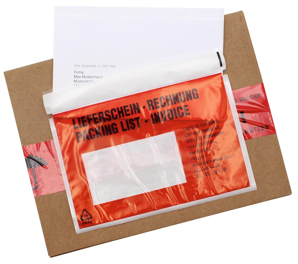 Begleittaschen, Format C6, Aufdruck Lieferschein/Rechnung, VE 1000 Stück