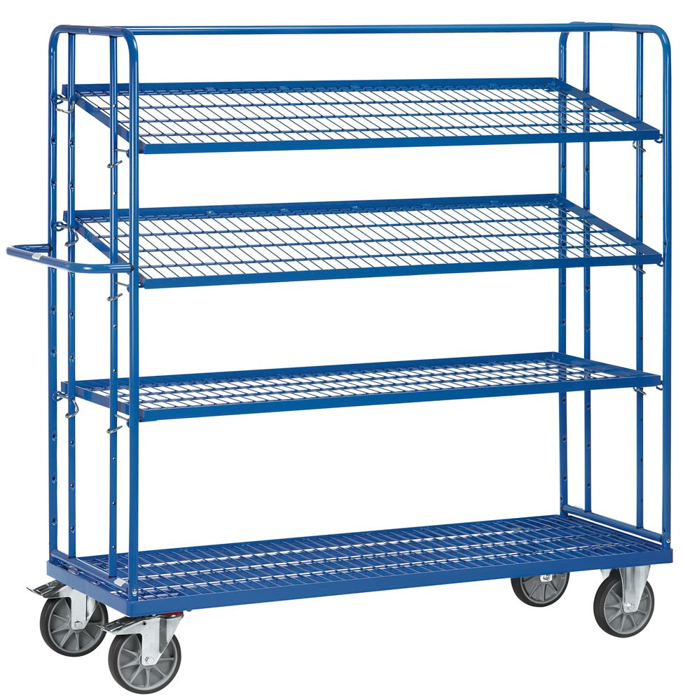 Beistell- und Kommissionierwagen, 4 Gitterböden, Ladefläche LxB 1250x610 mm, Außenmaße 1430x620x1800 mm, Traglast 500 kg, RAL 5007 brillantblau