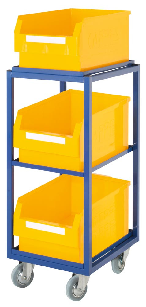 Beistell- und Kommissionierwagen, LxBxH 383x485x923 mm, 3 gerade Böden, 3 Kästen Gr. 1 gelb, Traglast 230 kg