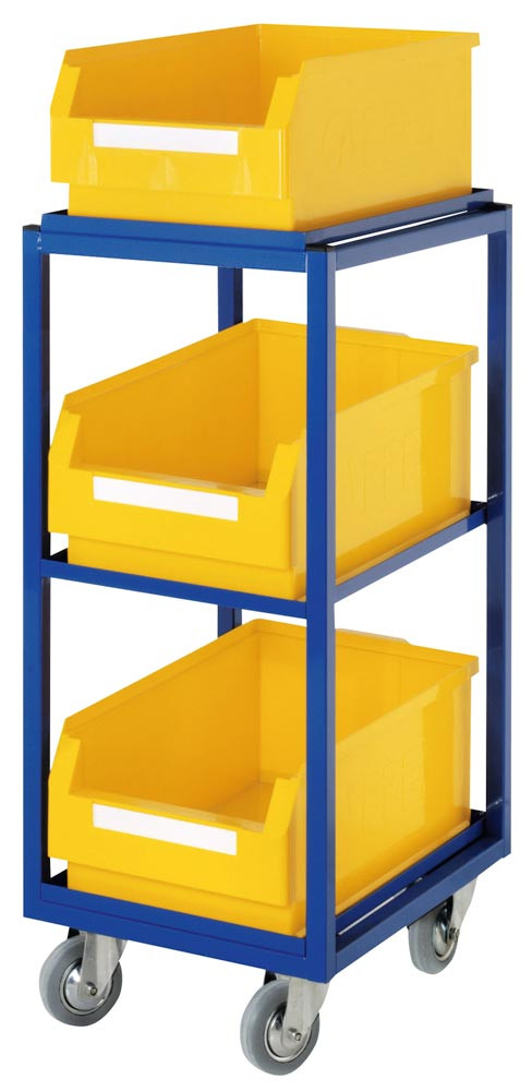 Beistell- und Kommissionierwagen, LxBxH 383x485x923 mm, 3 gerade Böden, 3 Kästen Gr. 2 gelb, Traglast 230 kg