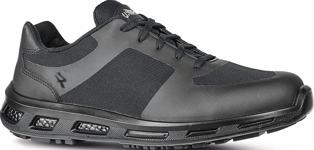 nach EN ISO 20347:2012 · 02FO SRC ESD · Obermaterial: hochfestes, abriebfestes Nylon mit Schutzbeschichtung, 100 % Vegan ∙ Wing Tex-Futter: atmungsaktives Material mit Belüftungsgängen ∙ WOW Gel Fußbett aus Elastopan von BASF mit Gel-Einsatz im Fersenbereich, atmungsaktiv, stoßdämpfend und antibakteriell · PU-Zwischensohle und Infinergy® ∙ PU-Laufsohle: abriebfest, ölresistent, rutschfest und antistatisch ∙ mit leichtem Absatz ∙ nach DGUV 112-191 · Weite 11