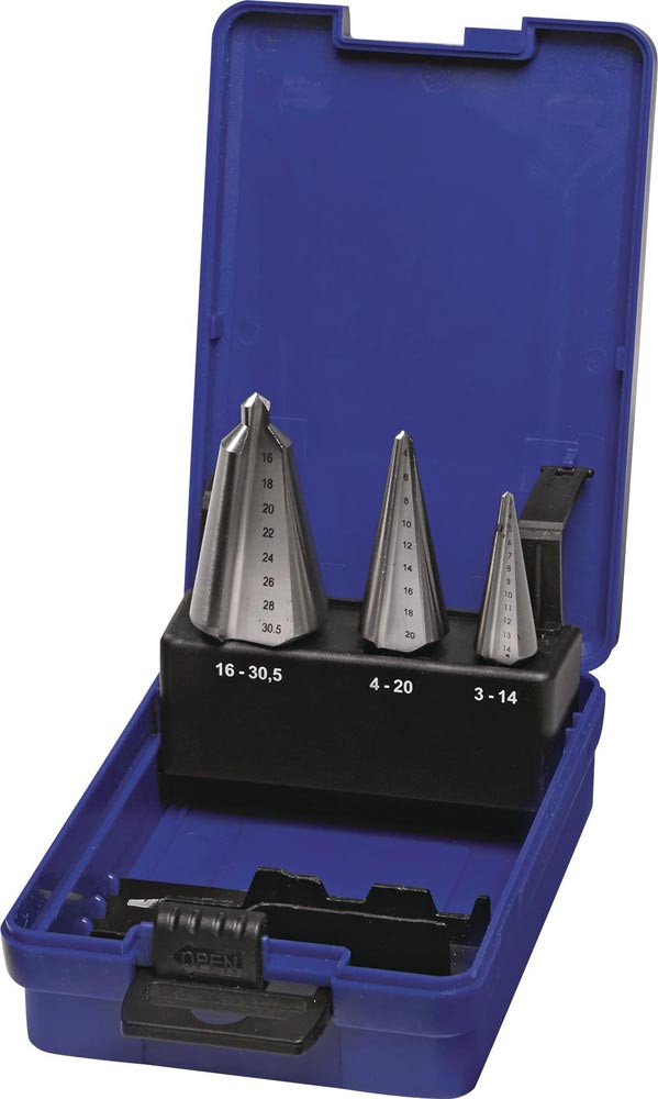 Blechschälbohrersatz 3-14/4-20/16-30,5 mm HSS 3 teilig Kunststoffkassette E6498542