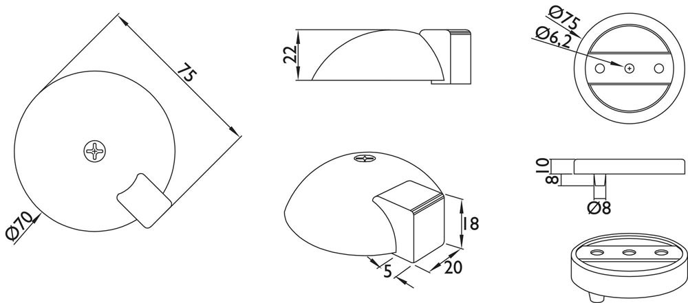 classische Schildkrötenform · mit Holzschraube 6 x 60 mm, Dübel Ø 10 mm