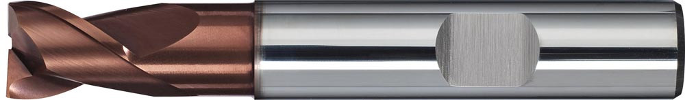 VHM · Universal-Feinstkorn · TiAlN-beschichtet · DIN 6527 K · Typ N · Zweischneider · kurz · 45° Schutzfase · Zentrumschnitt · mit Zylinderschaft nach DIN 6535 HB · dynamische Steigung · rechtsschneidend · Halsfreischliff · für vibrationsarme Bearbeitung, zum Schruppen und Schlichten geeignet · durch neu entwickelte Geometrie und Beschichtung universell einsetzbar zum Fräsen in Stahl, Stahlguss, Grauguss, Temperguss, Cr-Ni-Stählen, NE-Metallen, Aluminium mit Siliciumanteil und abrasiven Werkstoffen