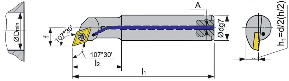 Bohrstange A1216M-SDQCR 07 rechts vernickelt mit Innenkühlung E6006018