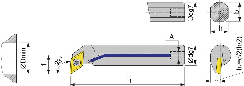 Bohrstange A12K-SDUCR 07 rechts vernickelt mit Innenkühlung E6492108