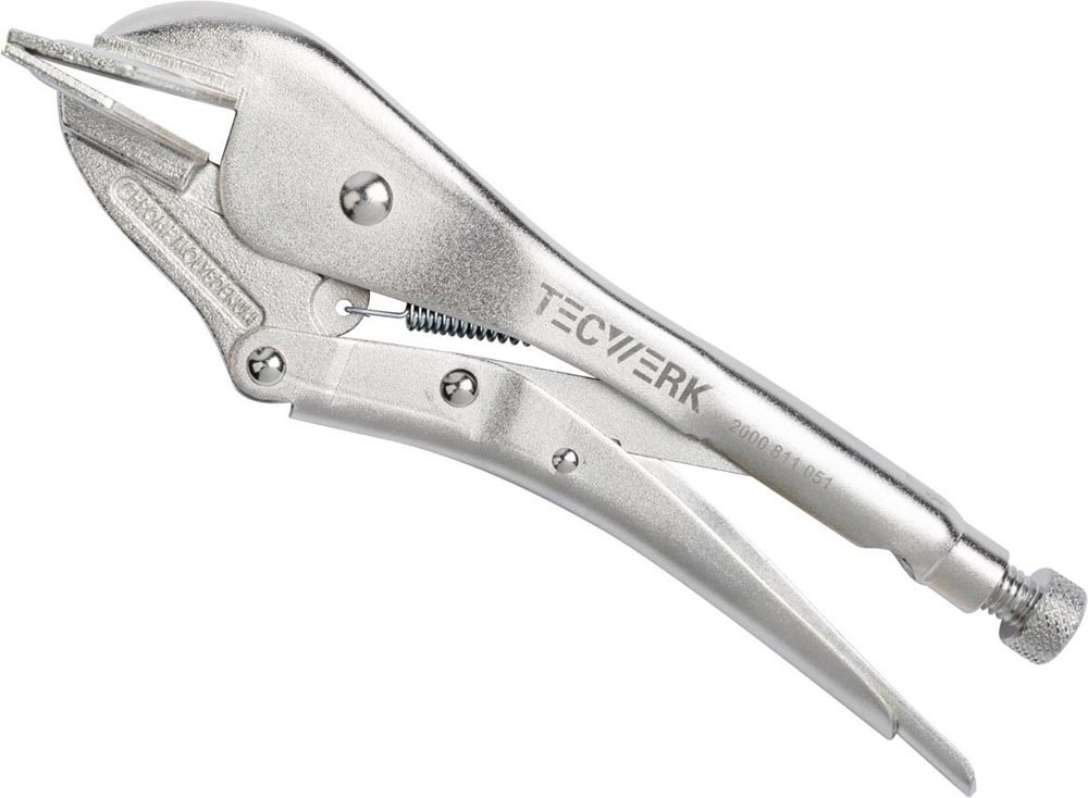 mit breiten, flachen Backen · mit Stellschraube und Lösehebel · Ideal für die Blechbearbeitung · zum Biegen, Formen, Verkleben oder Bördeln von Werkstücken · Schraube mit Innensechskant