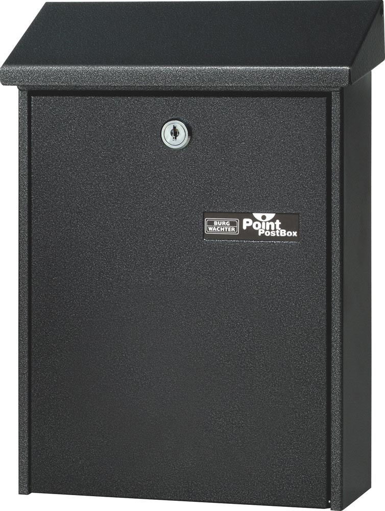 Kompakter Außenbriefkasten mit Schrägdach · verzinkt und strukturlackiert: weiß oder schwarz · Einwurf Format DIN B5